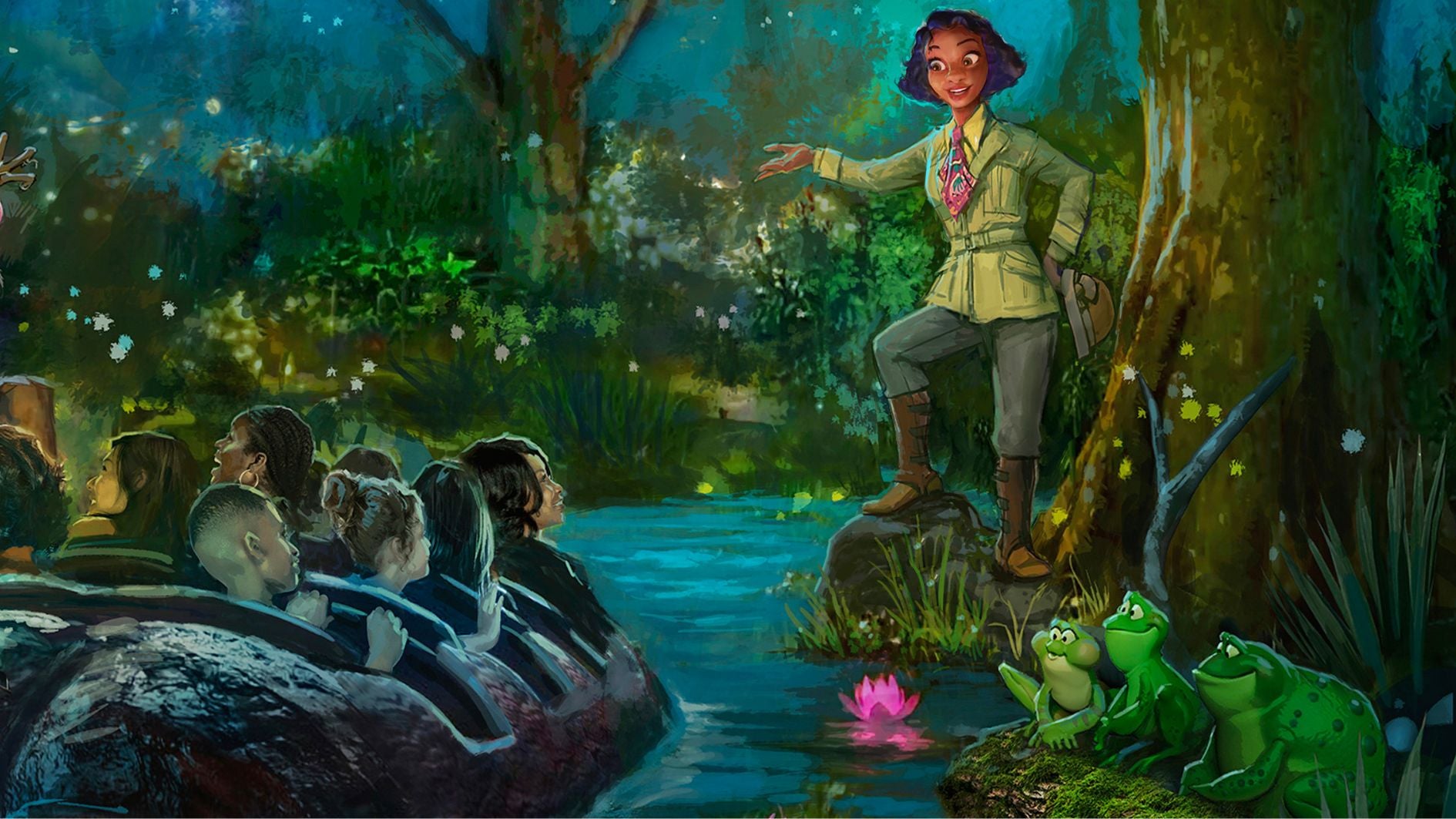 The firefly-filled scene depicts the “thrilling moment you first drop into the bayou and encounter some friends both new and familiar,” according to Disney. It’ll be exciting to hear more music sung by one of my favorite Disney Princess voices, Princess and the Frog star Anika Noni Rose—but a little terrifying if you don’t like rides with drops (it’s me, I don’t like drops). Still, for Tiana, I’ll do anything. Imagineers took special care to make sure the musical aspects of the water ride adventure are authentic to New Orleans; they’ll be inspired by the zydeco rhythm and blues that hails from Louisiana, setting the mood for the next chapter of Tiana’s story and exploring what role the band may play in it.