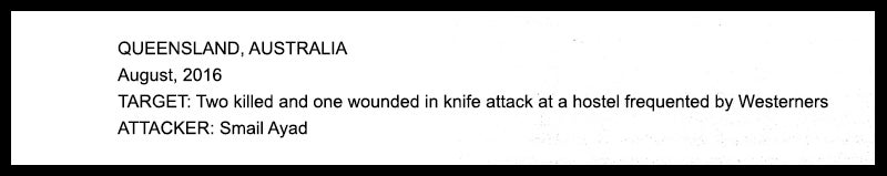 64. The White House’s list includes a double murder that took place in Australia on August 23, despite the fact that officials have repeatedly said that extremism was not a factor in the killings. Regardless, Trump didn’t tweet about it, but offered some of his signature media criticism instead: