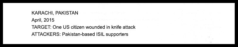 16. The White House lists an apparent April attack in which a U.S. citizen was wounded in a knife attack in Karachi, Pakistan, by Islamic State militants. There is no report of such an attack, although an American woman was shot and wounded in Karachi that month. Regardless, Trump’s only terror-related tweet that month was a link to a false item about an ISIS setting up a training camp in Mexico: