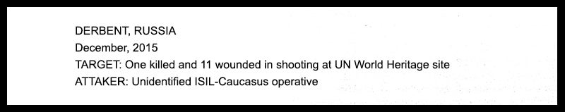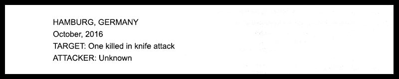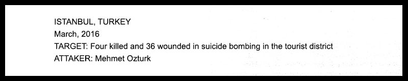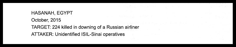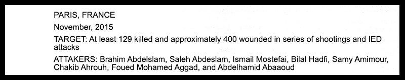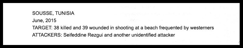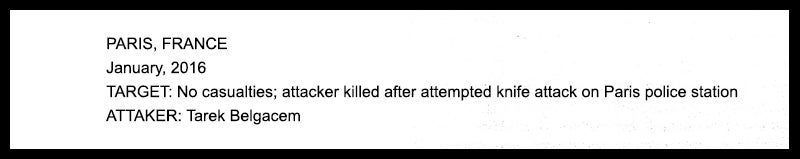 The White House’s typo-ridden list leaves out a lot: the trail of blood and misery left by Boko Haram across Nigeria, and any attacks in Iraq or Syria. It also doesn’t include attacks perpetrated by white supremacists or other right-wing lunatics like Dylann Roof, who executed nine people at a black church in South Carolina, or Robert Dear, who calls himself a “warrior for babies” and murdered three people at a Planned Parenthood in Colorado in late 2015.