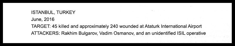 57. On June 28, 45 people were killed and 240 wounded in a triple-suicide attack on Istanbul’s main airport. Trump acknowledged this with a tweet: