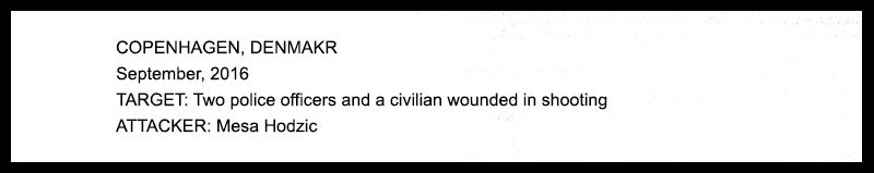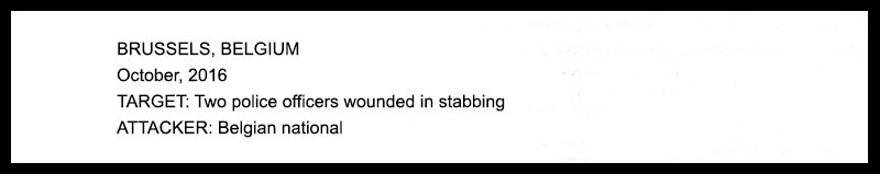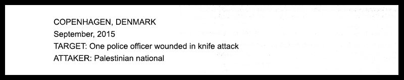 30. From this point forward, the White House list misspelled “attacker.” On September 30, a Danish police officer was stabbed in Copenhagen by a Palestinian man whose asylum application had been rejected. Trump tweeted: