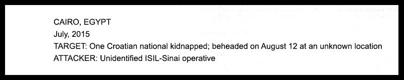 26. The White House listed the August 12 execution of a Croatian hostage by ISIS militants as occurring in July, 2015. Regardless, he didn’t tweet about it, but had this message: