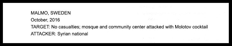 72. An October 11 botched arson attack on a mosque in Sweden claimed by ISIS did not merit a tweet, but he did say: