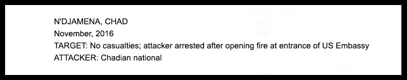 76. Trump did not tweet about a November 30 incident outside the U.S. embassy in Chad, which the White House included on its list but which involved no casualties.