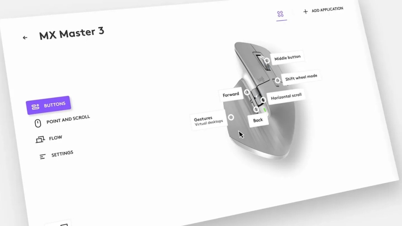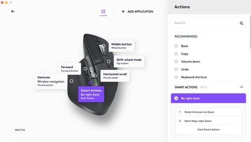 The Logi Options+ interface is clean and user-friendly, featuring a diagram of your connected device and letting you click to assign each individual button. Setting up a new application profile takes just a few clicks, and Logitech provides predefined configurations for popular apps, including Google Chrome, Microsoft Teams, Adobe Photoshop, Premiere Pro, Final Cut Pro, Excel, and Zoom.
