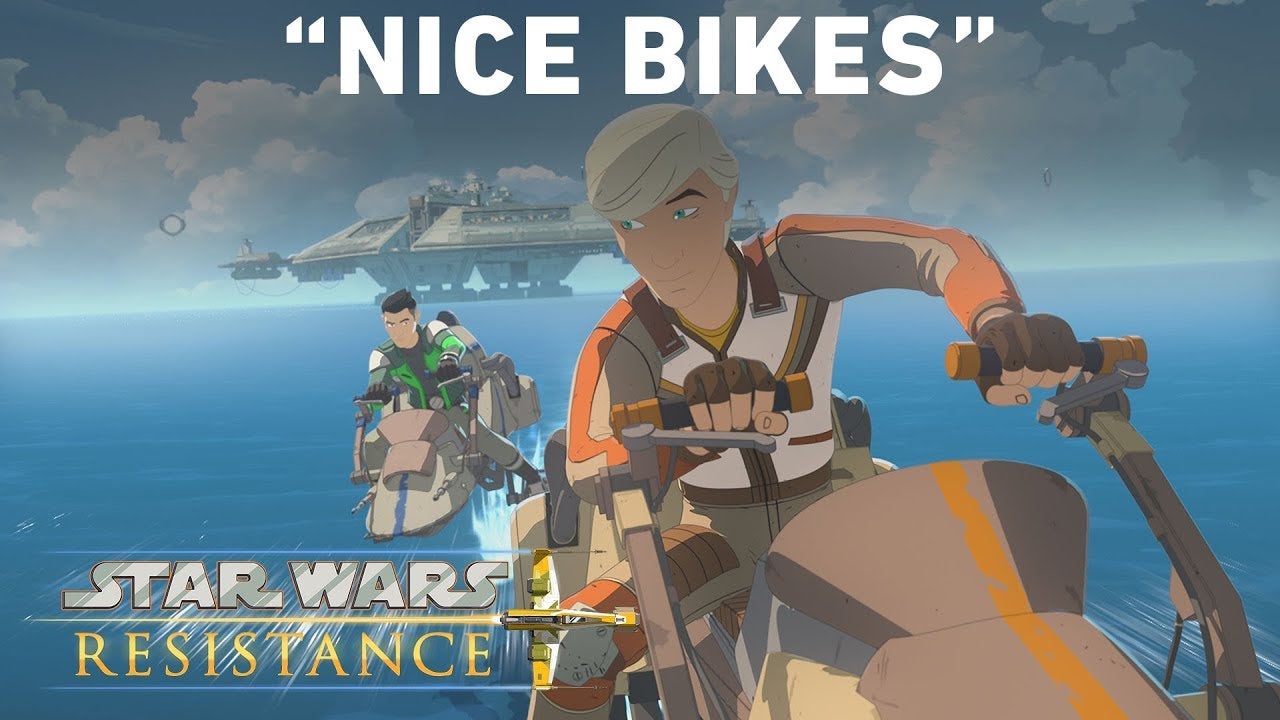 At first, this new clip from Sunday’s episode of Star Wars Resistance seems innocent enough. It’s Kaz and a new character, voiced by Elijah Wood, on speeder bikes racing toward a ring. Then, you read that sentence back. Elijah Wood is going after a ring! And he even tells Kaz that he can’t let him pass!