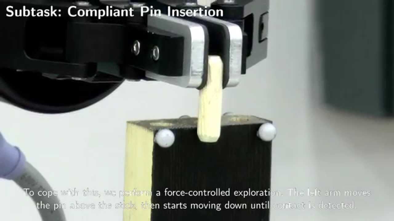 A newly published paper called A Framework for Fine Robotic Assembly outlines how the researchers overcame the peg-in-hole problem. In brief, the assembly of an Ikea piece requires placing dowels into small holes, a task that tests the robotic vision system’s limit of positional accuracy. Both the dowel and the hole are tiny and hard to see, so the Nanyang researchers enabled the robot to “feel” the pieces. Fitting them together is even harder, but the researchers figured out that a pre-programmed series of motions that essentially amount to a system of trial-and-error would ultimately succeed. It’s not very graceful, though.