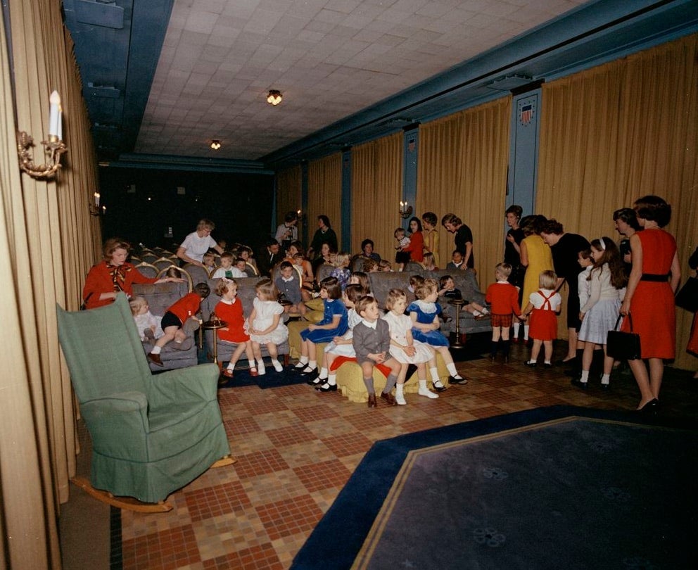 The First Lady would spend just one more time in the White House Theater on November 29, 1963 for Little John and Caroline’s joint birthday party. The photo below was taken during the previous year’s festivities. The rocking chair pictured below was John’s.