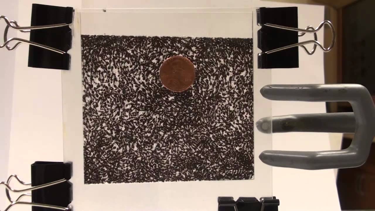 This gives them the properties of a viscoelastic material—a substance that resists any deformation, that can flow when it needs to, but that springs back into shape after it has been deformed. That is a very valuable property. If it could be harnessed, it would mean that instead of shattering, materials like windows or walls could flow back into shape if they were deformed by too much stress. Take a look at what happens when a group of ants gets a penny dropped onto it: