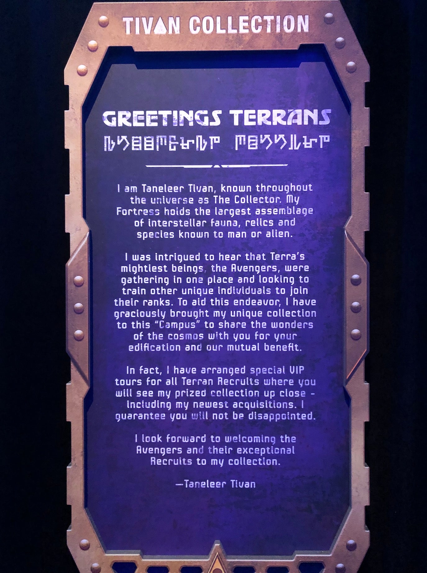 And The Collector, who runs that establishment, has a letter explaining how he fits into this whole thing.