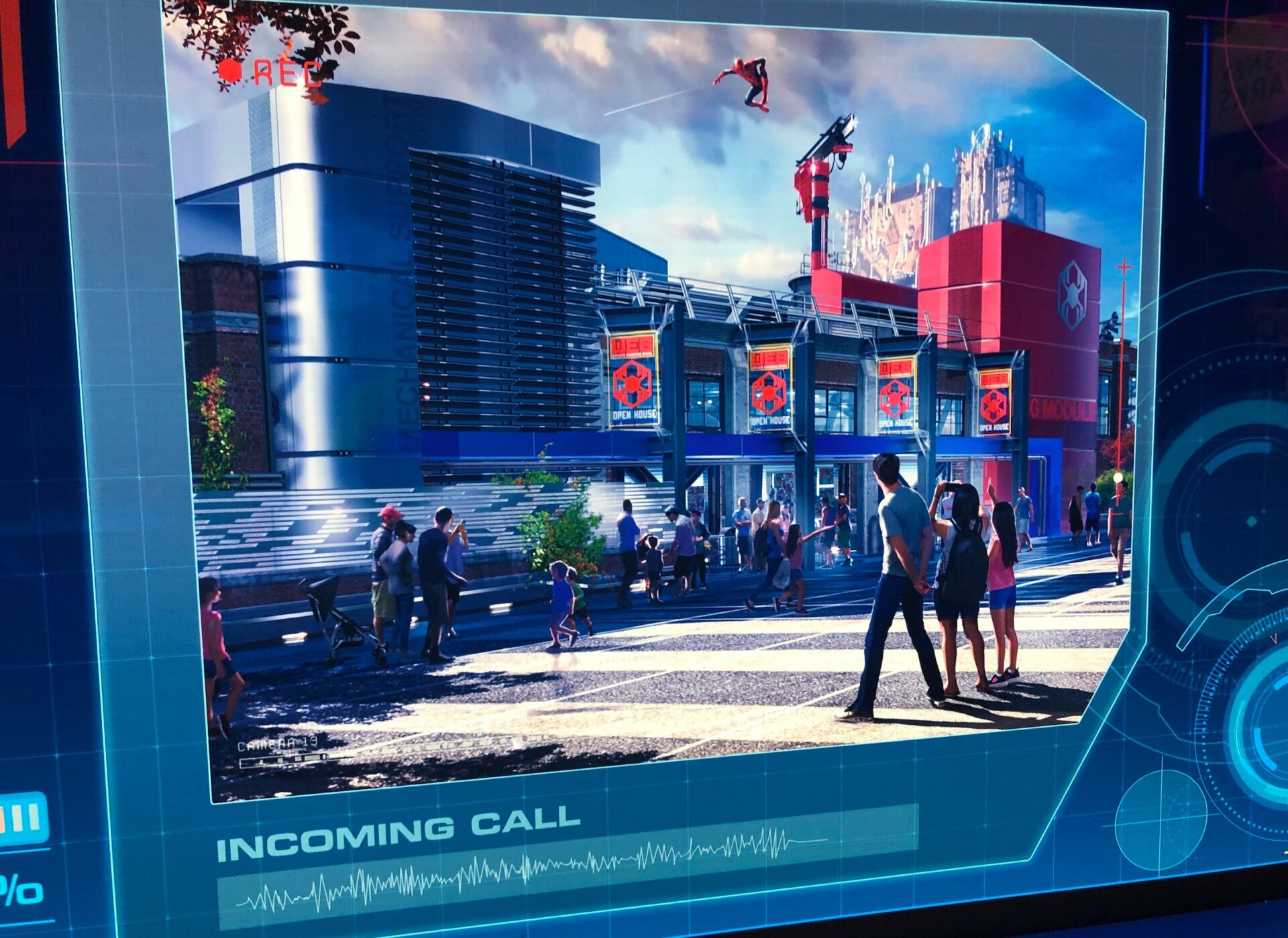 There’s some kind of open house teased outside the ride and Spider-Man is flying in.