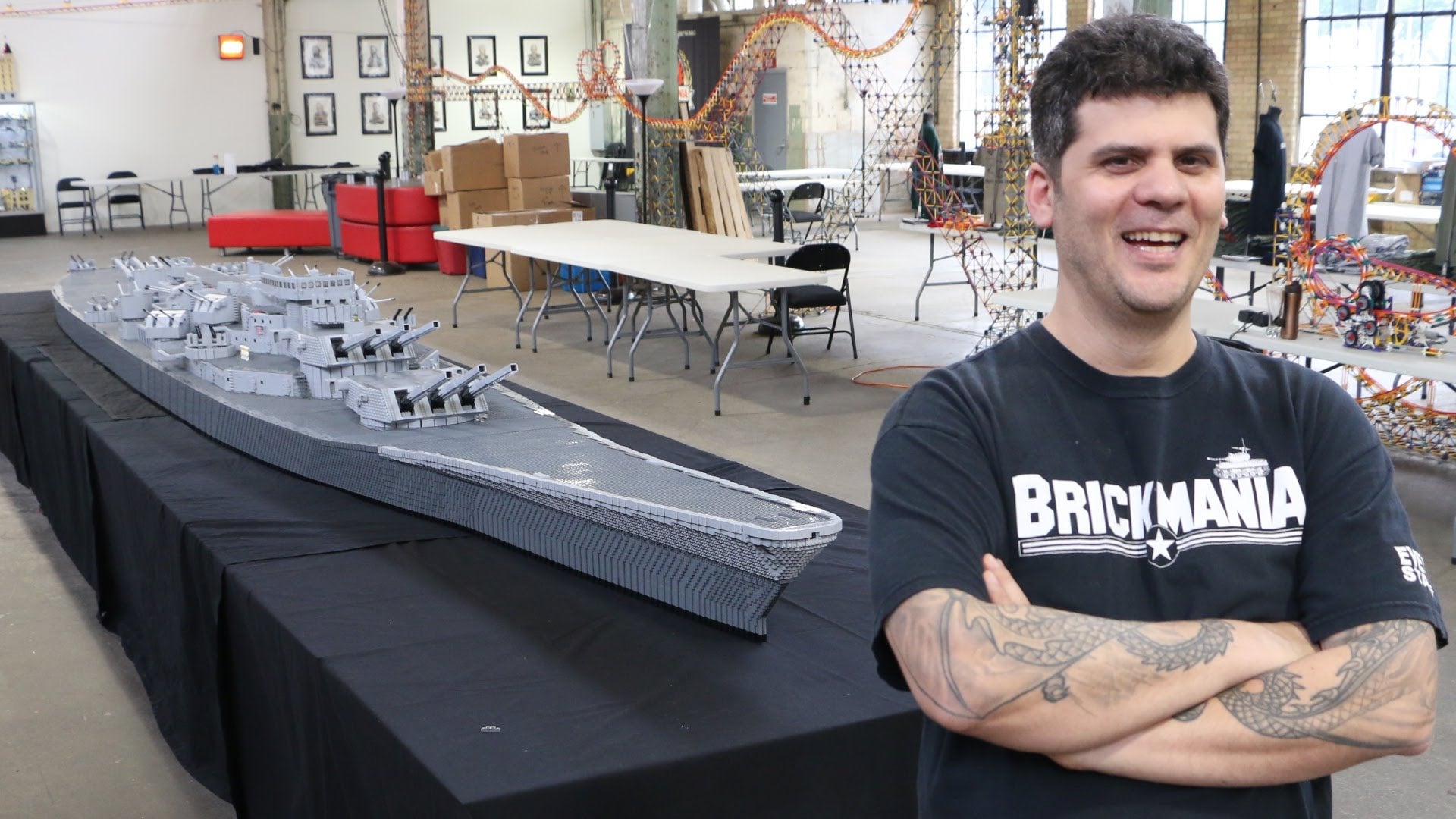 Jim McDonough's #LEGO build of the USS Missouri took 3 years. It stands 4ft 6 in. high, 3ft wide & 24ft 3 in. long. pic.twitter.com/Us8grr4auP