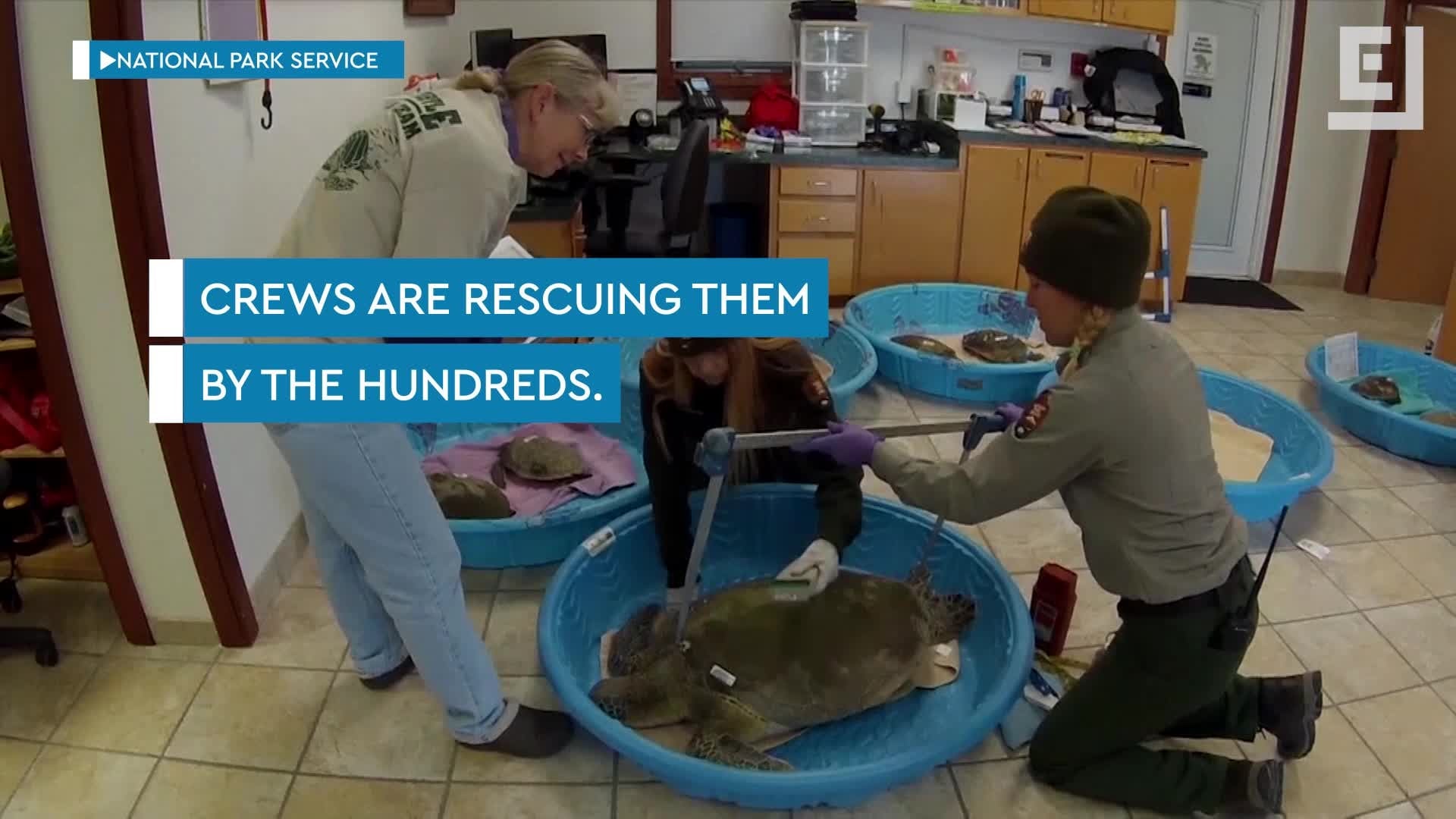 Bay News 9 reports that Florida’s Gulf World Marine Institute rescued more than 80 sea turtles stunned by the cold earlier this week. And that may just be the beginning. Michelle Kerr, a spokesperson for Florida’s Fish and Wildlife Conservation Commission (FWC) told Earther state biologists have been dispatched to multiple locations, from St. Joe’s Bay in the northwest to Mosquito Lagoon south of Dayton Beach, to help sea turtles in need.