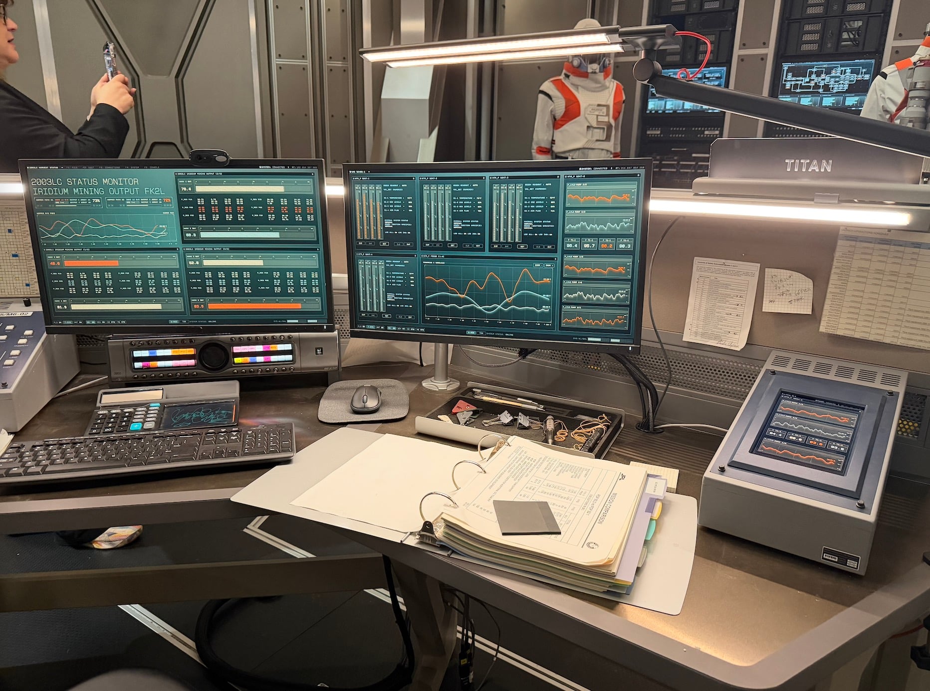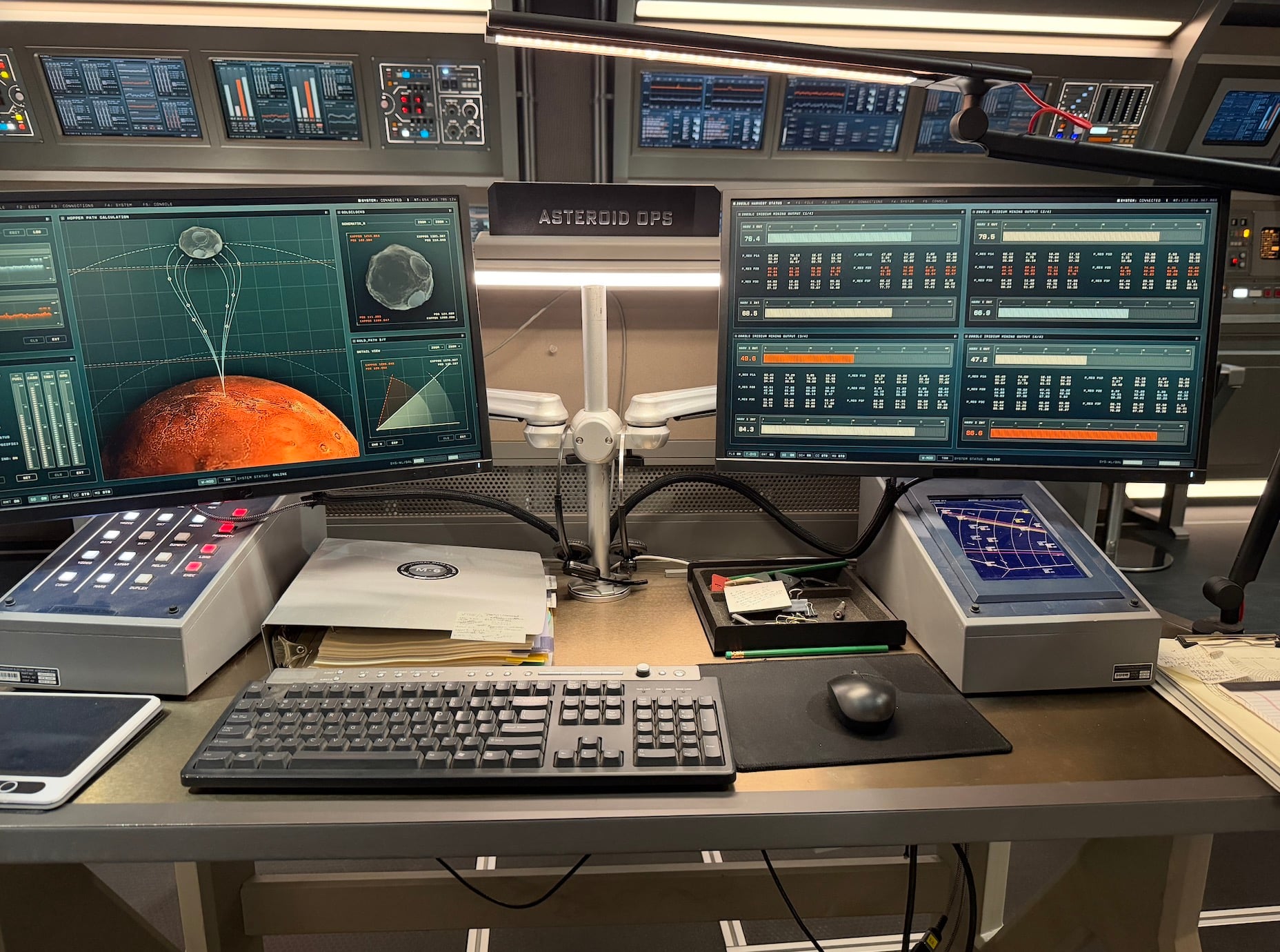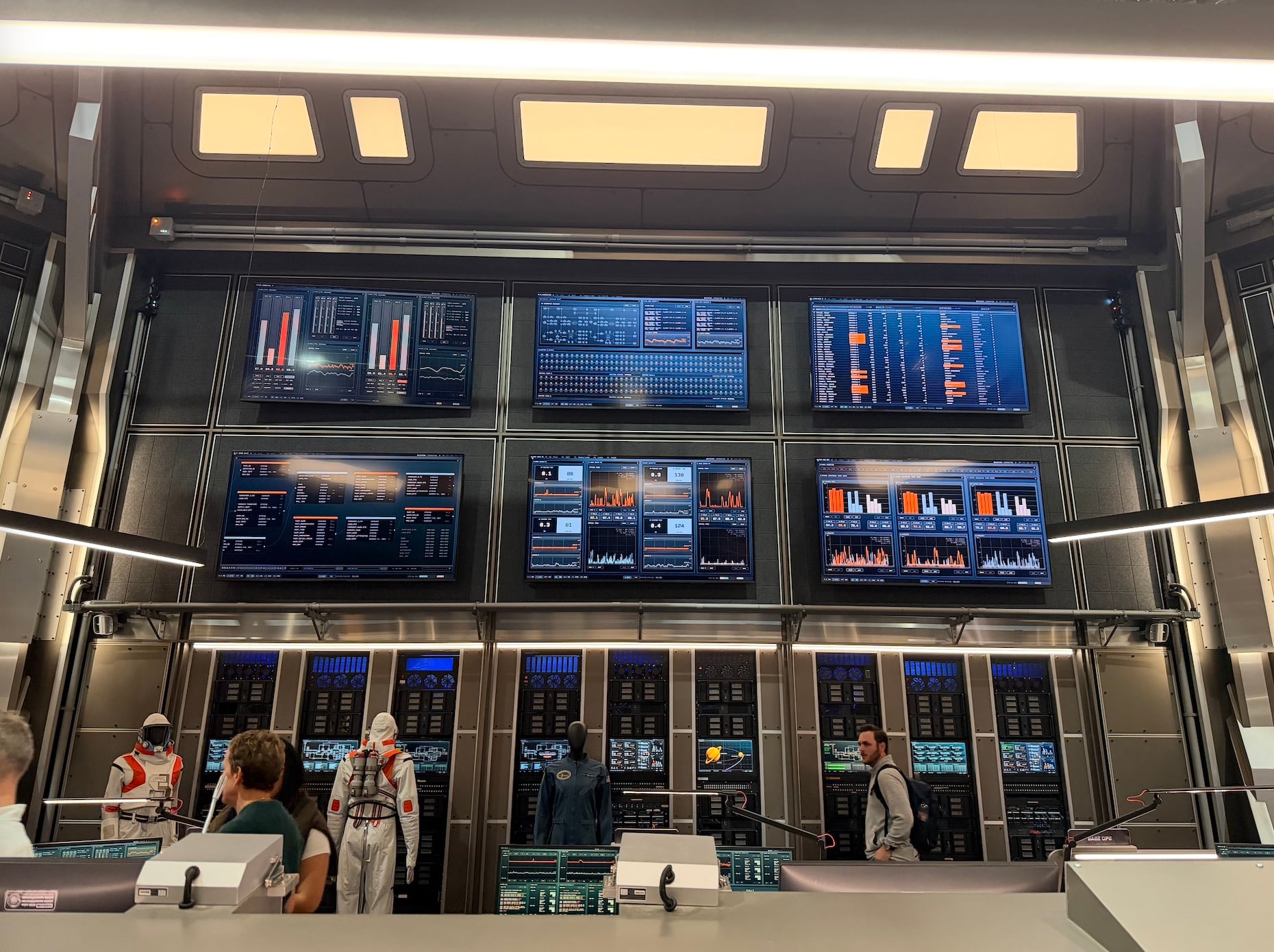 The set is, frankly, awe-inspiring. It’s a full 360-degree immersion with every button and screen fully operational. “We are pretty sure we can actually launch a spaceship from this room,” co-creator Matt Wolpert joked. Binders and notepads fill every desk, each chock full of data. Screens are on every surface and flash all types of information, such as how strong the communication signals are between Mars and other bases. Others track active missions around the area. And some spoil things to come later in the season, so we won’t talk about those. But here are a few images: