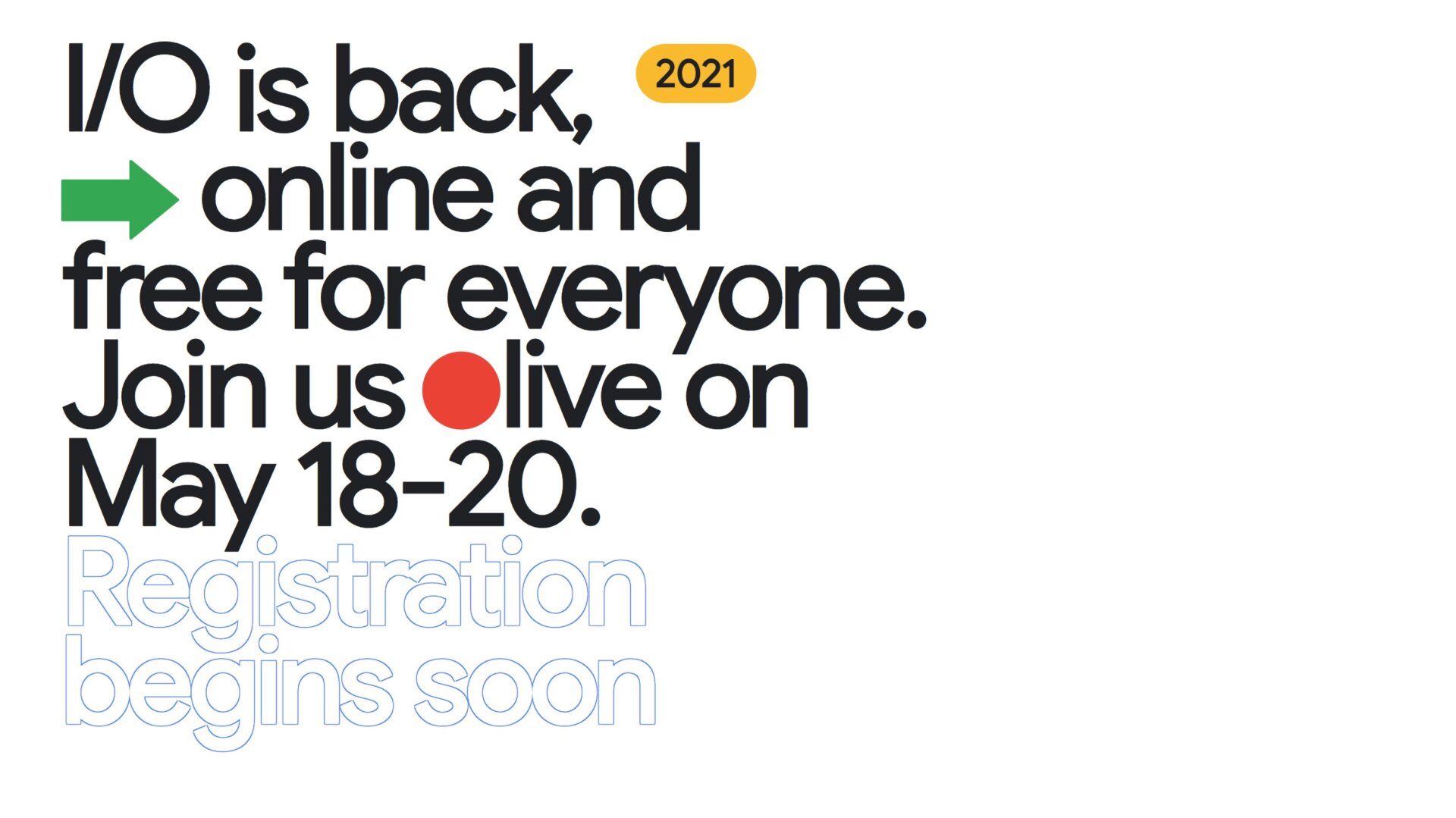 Following Apple’s WWDC announcement and Microsoft’s Build reveal, Google has announced a date for its own developers conference, Google I/O 2021, which will kick off virtually on May 18.