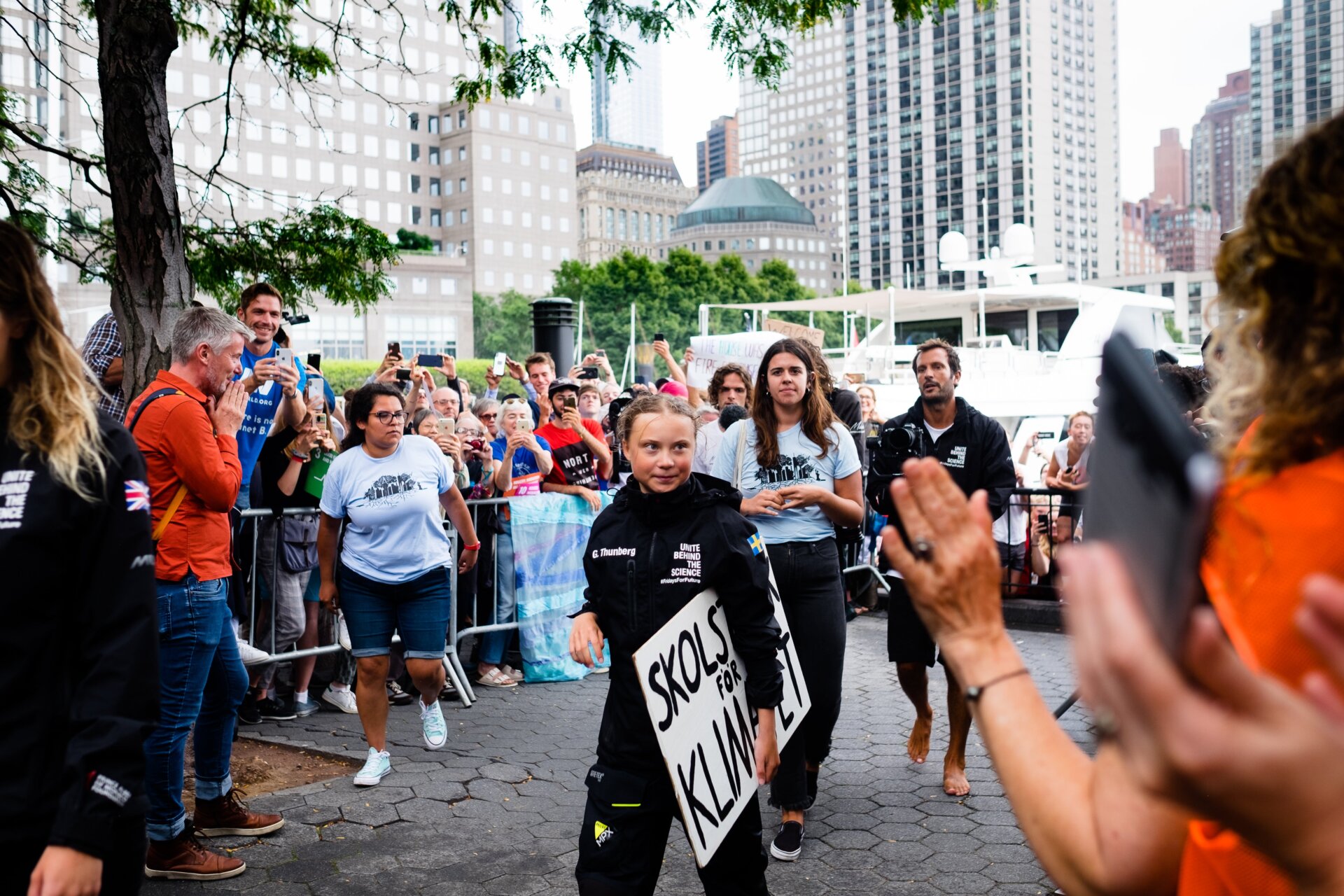 It felt like the second coming of the Beatles in some way, but with higher stakes. Thunberg has been nominated for a Nobel Prize, burned politicians and the wealthy to their faces for putting profit over planet in ways most of us can only dream of, and galvanized a wave of youth climate activism. The power of that wave was visible with a large contingent of young adults (and a good number of voting-age adults, too) greeting her on the shore. A hush washed over the crowd as Thunberg’s racing boat appeared, giving an almost church-like vibe to the proceedings.