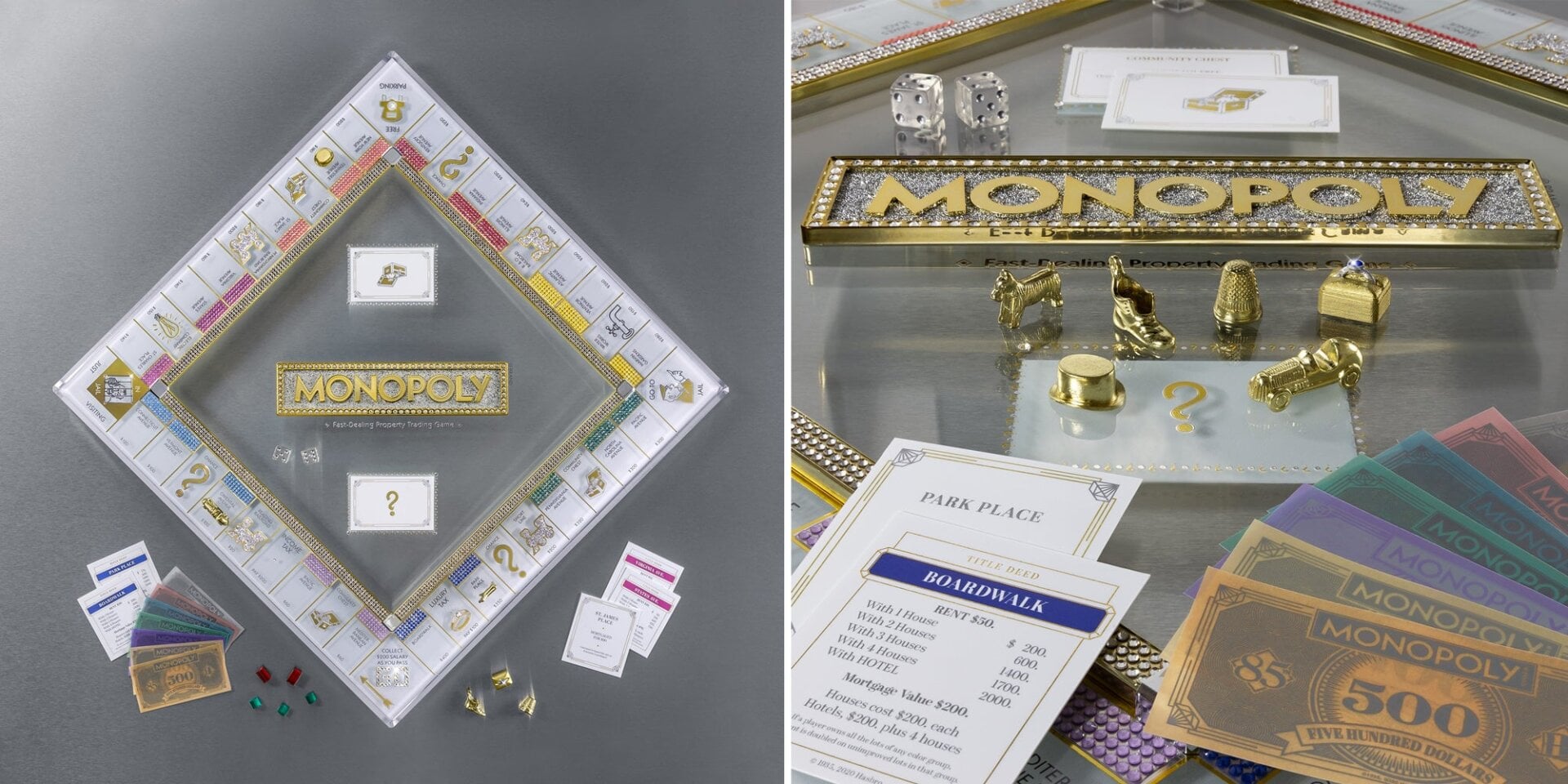 It doesn’t matter how many properties you own, how many hotels you build, or how much cash you amass, you never really feel like a maniacal billionaire while playing the standard version of Monopoly. If you really want to feel like you’re a part of high society, Hasbro has partnered with Winning Solutions to create (yet another) new version of the game to help celebrate its 85th birthday. Instead of cardboard, the game board is made from thick tempered glass printed with actual gold and foil lettering and adorned with over 2,000 Swarovski crystals. Even the pretend has been upgraded, now made from plastic vellum so it will survive longer than the real cash in your pocket. Although that won’t last long either if you’re buying one of these sets. Only 500 are being produced, and each one costs $500, with pre-orders available now.