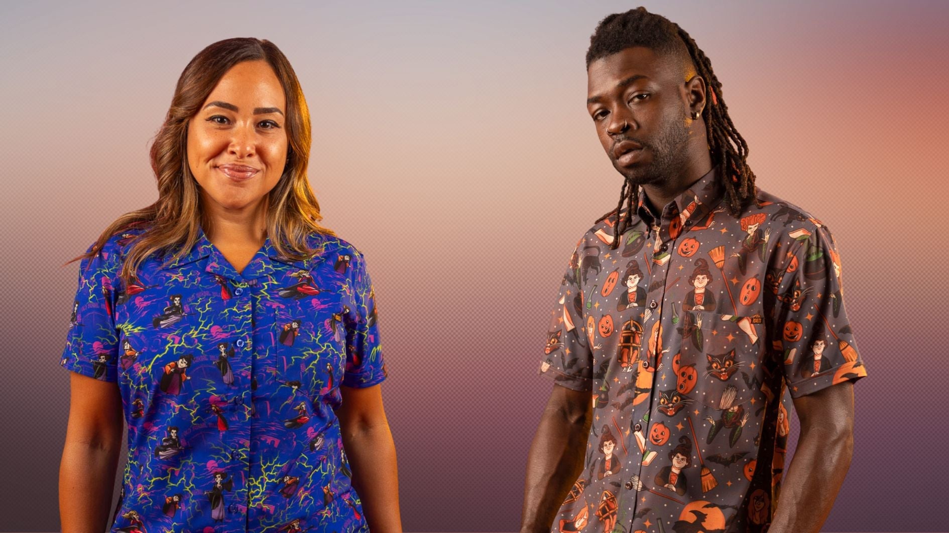 Here’s a look at the Hocus Pocus collection featuring Winifred, Sarah, Mary, and Binx—of course! In both unisex and fitted women’s button-down sizes, RSVLTS brings the witchy vibes needed to kick off Halloween season and to take to the Disney Parks during their fall festivities. No lie, these are too cool to just wear for a month with their breathable and lightweight fabric. They’d definitely fit right into the wardrobe of anyone who knows everyday can be Halloween.