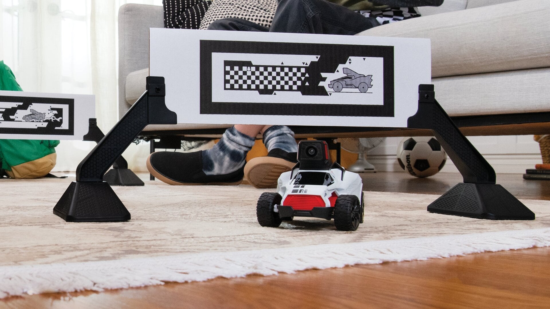Otherwise, the basics are pretty similar to Mario Kart Live. When you buy Rift Rally, which costs $130 for the regular bundle and $150 for the collector’s edition, you’ll get the game and a Hot Wheels Chameleon RC car, which has a camera mounted above it in a periscope position that’s similar to what you’ll find on Mario Kart Live’s RC cars. You can then boot into the game, control your car with your system’s controller (the iOS version will accept both controller and touch inputs), and watch the screen as the game overlays AR effects and goals over the footage being streamed in from your car.