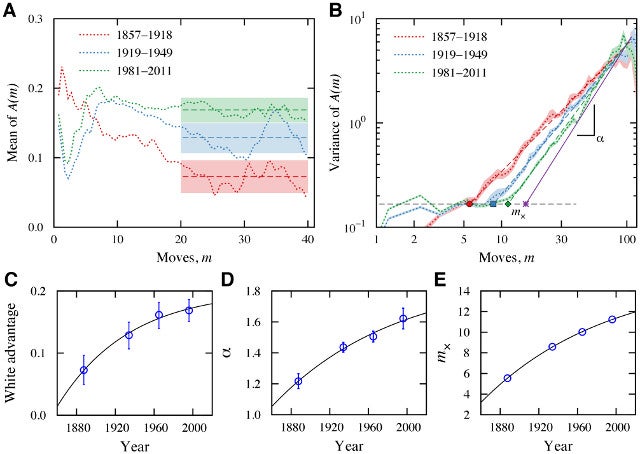 Historical trends in the dynamics of highest level chess matches. Credit: H. V. Ribeiro et al./PLOS