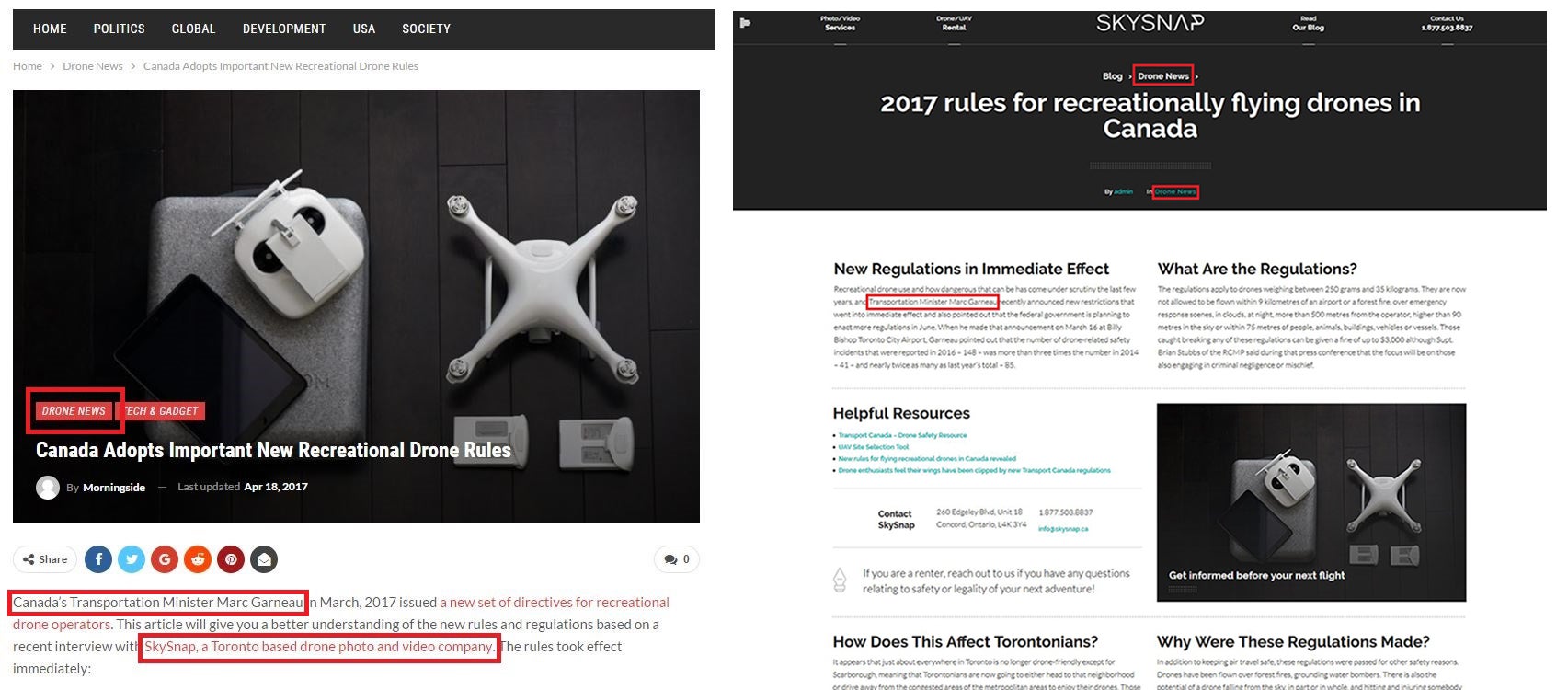 As of early June, there was just one new post, an advertorial promoting a Toronto-based drone photography company, SkySnap. It includes a prominent link to a strikingly similar article on the company’s site.