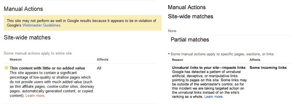 Google frequently removes sites from its listings that it finds to be in violation of the guidelines. The company is secretive about its exact methods of detection. But we know that some sites are demoted automatically, through the algorithm that looks for tell-tale signs of spam sites, and some through what are called “manual actions” by Google employees—humans overseeing some of the automatic findings and responding to user-submitted spam reports.