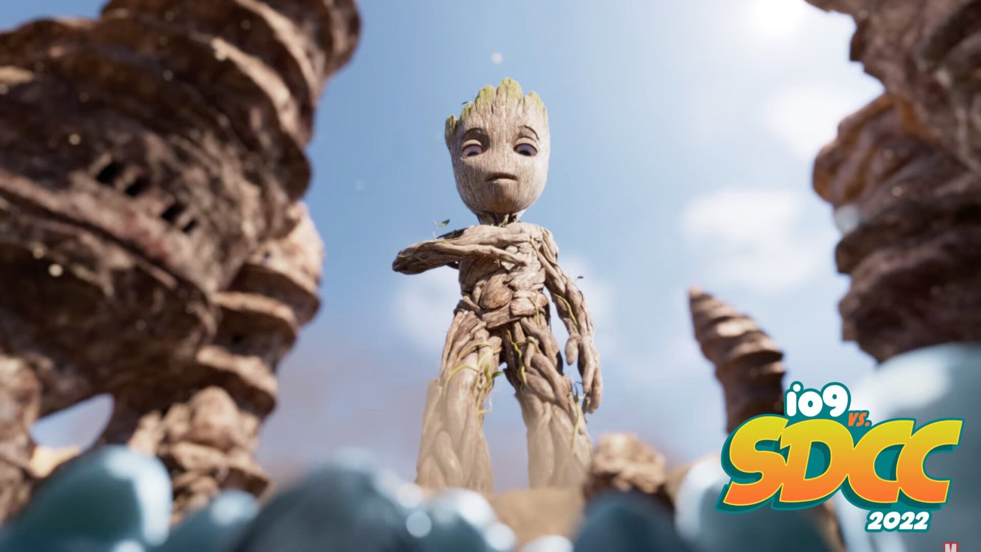 In a special reveal today at Comic-Con Marvel screened the first trailer for the animated show, I Am Groot. Vin Diesel is reprising his role as the voice of Groot, and it was said on the panel that Bradley Cooper will also be returning to voice Rocket Raccoon, Groot’s rascally best friend and terminal bad influence.