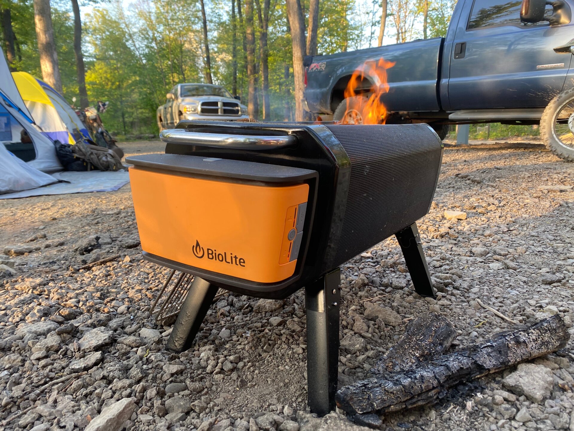 Beyond the basic FirePit+, BioLite also sells a few accessories, including a cast iron griddle that spans the top of the fire cavity, a BBQ lid, and a set of cooking utensils (knife, tongs, spatula), all of which the company included in the review kit I received (retail: $400, including the FirePit+). You don’t need any of this stuff to enjoy the FirePit+, but I will say it all came in handy during a camping trip this summer when I wanted to cook up some scrambled eggs and sausages for me and my friends in the morning.