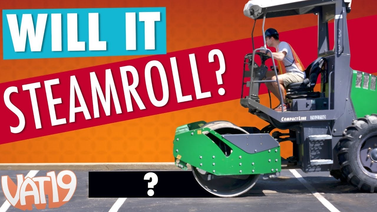 Of all the giant machines you’ll find on a construction site, the steamroller seems like it has the best potential for realizing your destructive childhood fantasies. There’s an endless list of objects you could stick under its rolling steel drum, but obliterating a giant gummy bear somehow stands out as one of the most satisfying.
