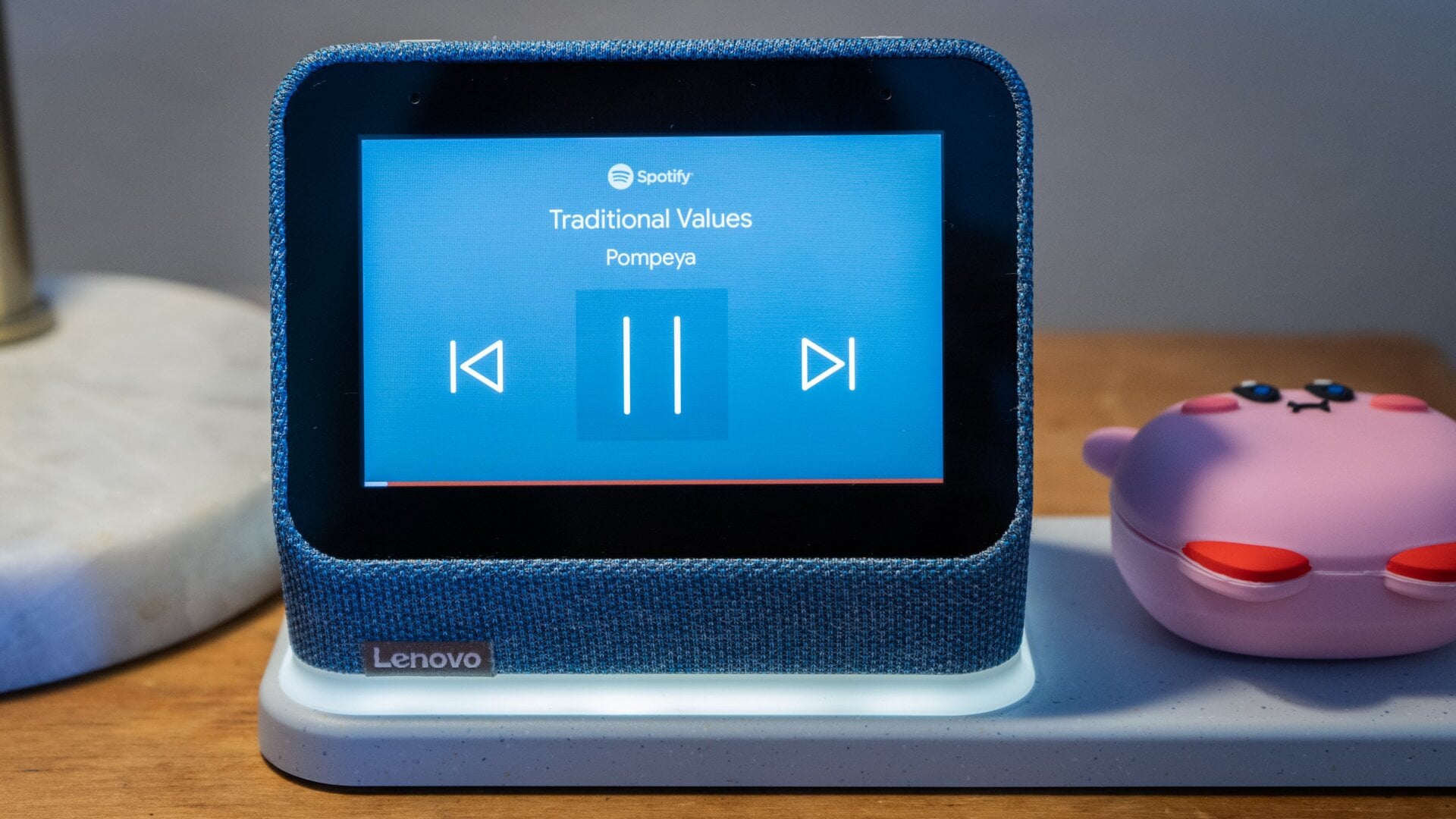 Lenovo moved the first-gen's USB port to the optional charging base, it's not exactly a boombox, Nest cam feeds are the only video you can cast to the display