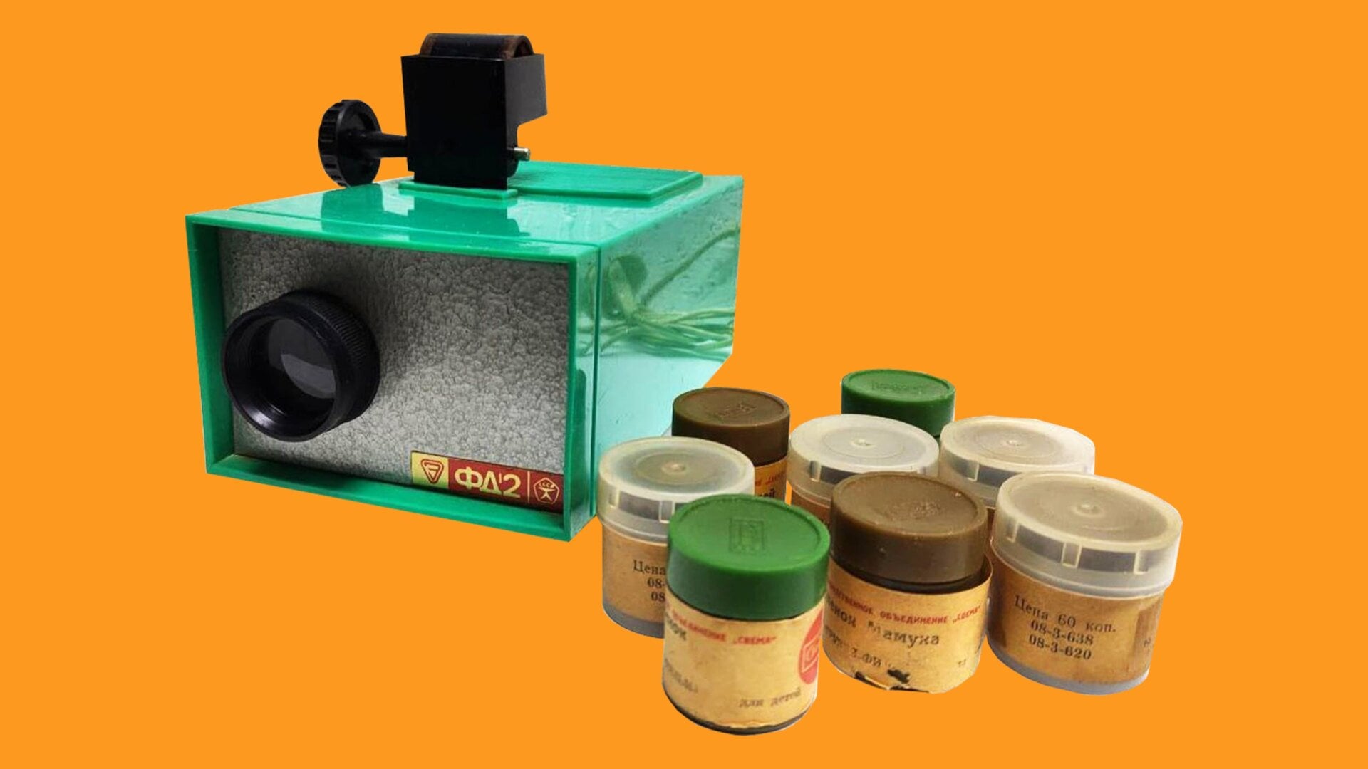 Diafilm stopped producing filmstrips in 1993, but China and Belarus are making comparable products under different brand names. You can still find Diafilm projectors and filmstrips—packed into their colorful plastic canisters with sometimes hand-written labels—on Etsy and eBay, if you don’t mind hefty international shipping rates from Ukraine and Russia and the mysterious shipping times that rely on some of the most unreliable postal services in the world. I’m eagerly awaiting my package.