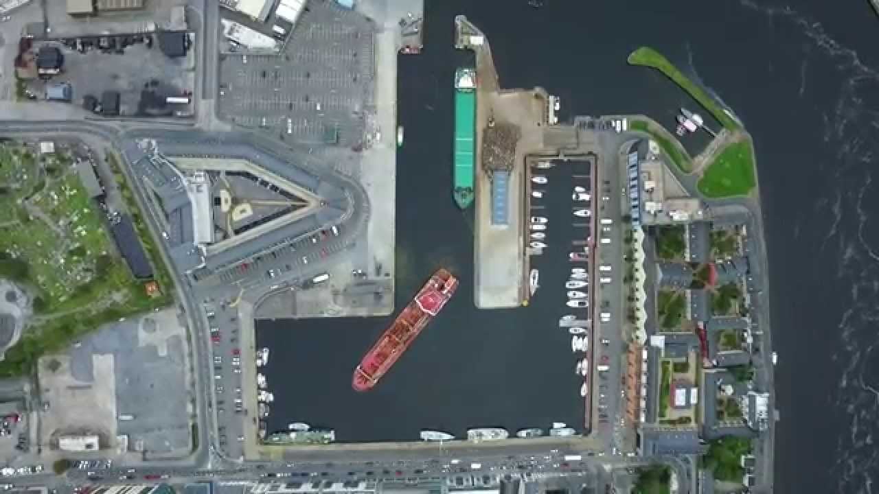 The captain of this ship must be a master Tetris player or a savant when it comes to that time wasting iPhone parking game or at least, be the inventor of the three-point turn because his maneuvering of this tanker, the Galway Fisher, into the narrow Port of Galway is simply incredible to see from up top.