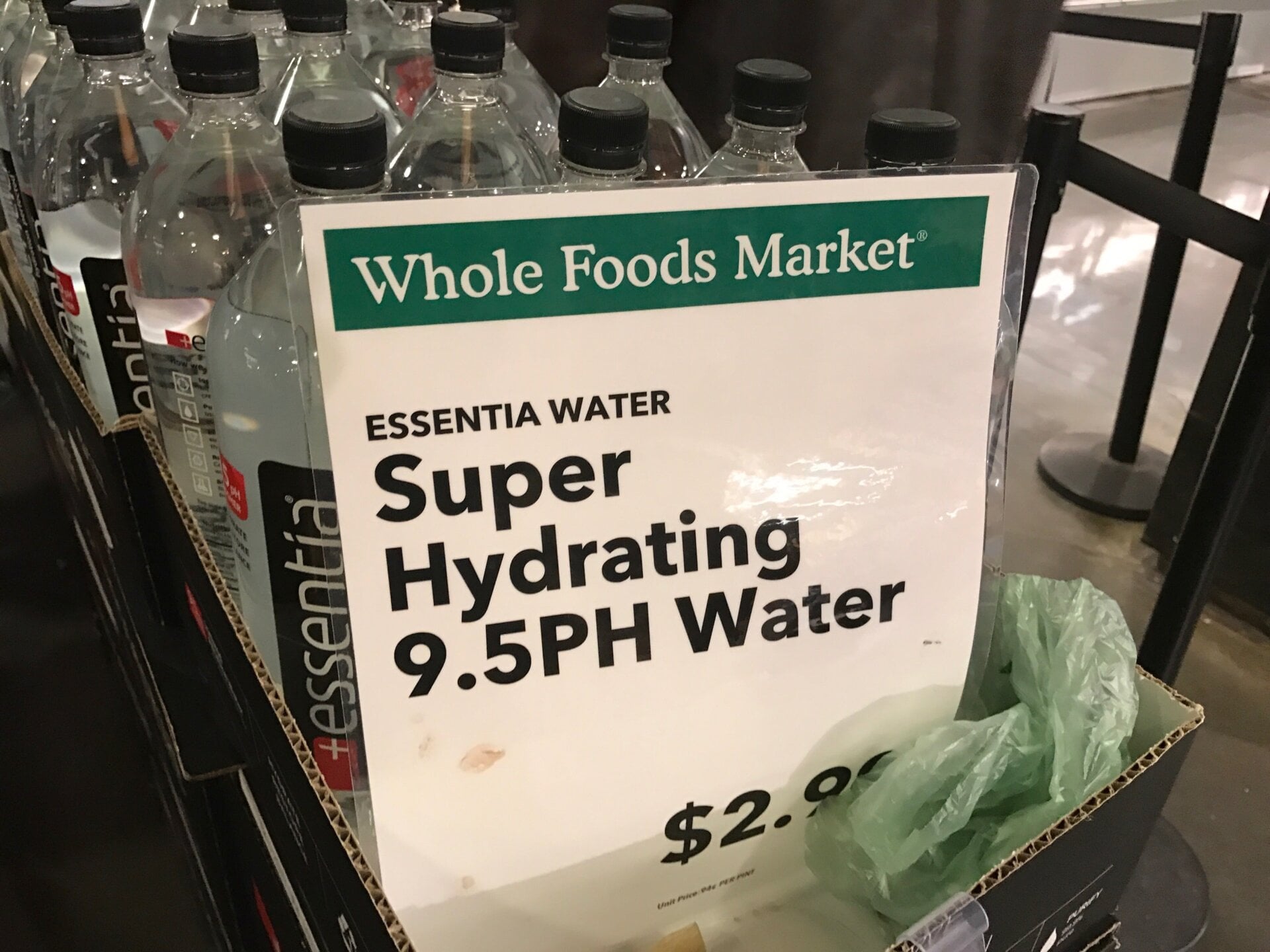 These basic water companies have done a good job convincing people about the benefits of their water, though, since the unreasonably expensive bottle was the only one sold at the checkout line at Whole Foods last week (I was there for a story. I do not shop there).