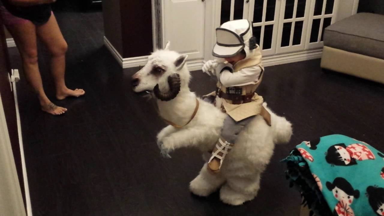 Clint Case apparently has aspirations of winning father of the year for 2016, and he just might clinch the title with this brilliant homemade Tauntaun Halloween costume he crafted for his son. This kid’s gonna rake in tons of candy on Halloween night, but it’s going to be a real tragedy when he has to cut that Tauntaun open and crawl inside to stay warm.