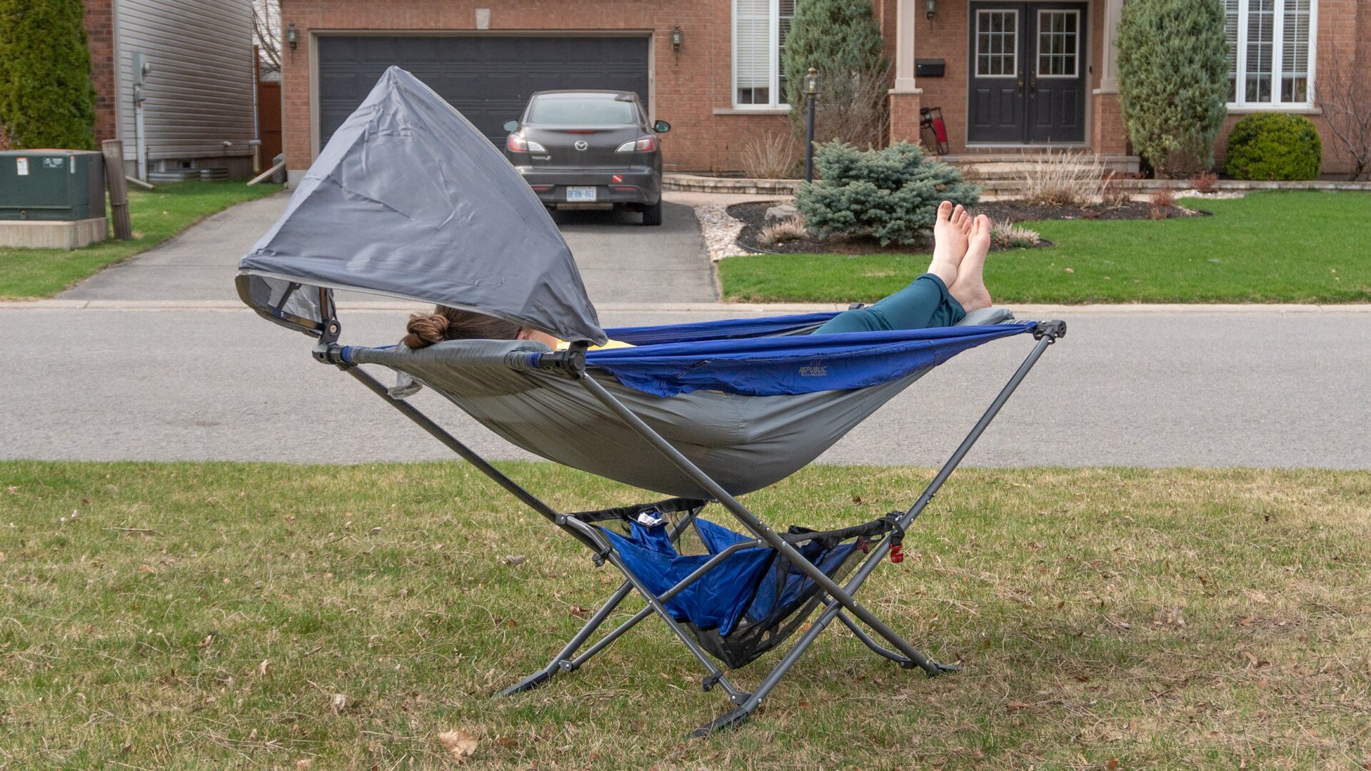 A bunch of add-on accessories are available for the Mock ONE, including bug nets and rain covers, but it does come with an optional sun shade that screws into place on either end (it doesn’t really matter what direction you lay in the hammock) and its angle is easily adjustable with just one hand.