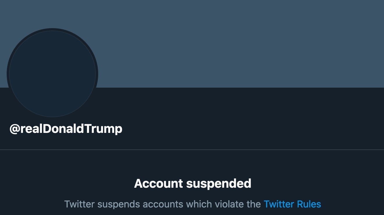 Rest in piss, @realDonaldTrump: Twitter has permanently suspended the president after he incited a riot at the Capitol this week.