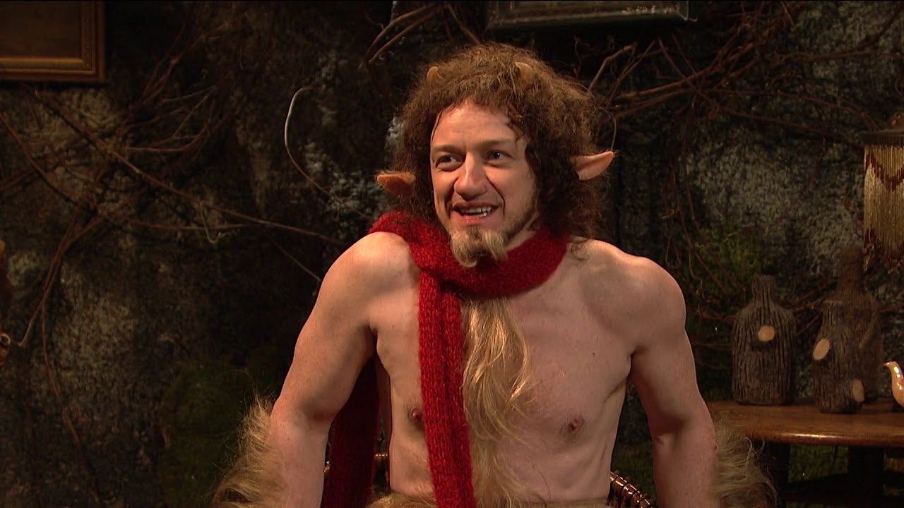 Did you even know that Mr. Tumnus in The Lion, the Witch, and the Wardrobe was played by James McAvoy? I did not. It was one of his first big film roles, apparently, and it helped to cement his career. Now, he’s back playing the faun in a very strange sketch on Saturday Night Live.