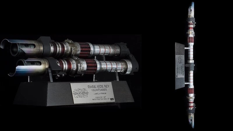 That teasing shock of Rey, clad in black robes and flipping open a dual-bladed, crimson lightsaber in the D23 Rise of Skywalker teaser has so far brought little in the way of merchandise, which is shocking because, well, this is Star Wars, and everything is merchandisable. But at least the first merch for it is going all the way in. EFX’s glorious recreation of the sinister lightsaber can be displayed in either its folded or unfolded forms, which, of course, means you can actually flip it open and like Rey does when you’re not displaying it on the provided hardwood base.