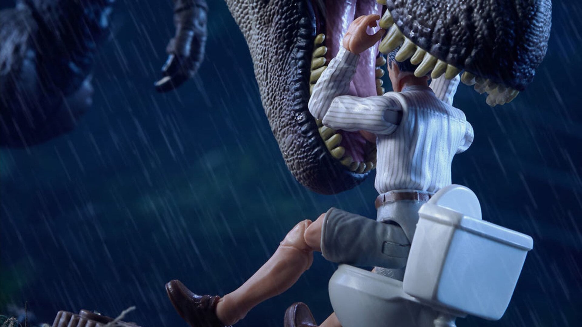 Although there have been six high-grossing (if not always beloved) Jurassic Park/World movies, it’s never enjoyed the robust action figure series that accompanied other major film franchises like Star Wars or the Marvel Cinematic Universe. That’s probably because the real stars of the movies are dinosaurs and not the various scientists, kids, and rich old men accompanying them. But for you Jurassic fans who have always dreamed of owning the cast of the films in plastic form, a major omission will soon be rectified. And it will come with a toilet.