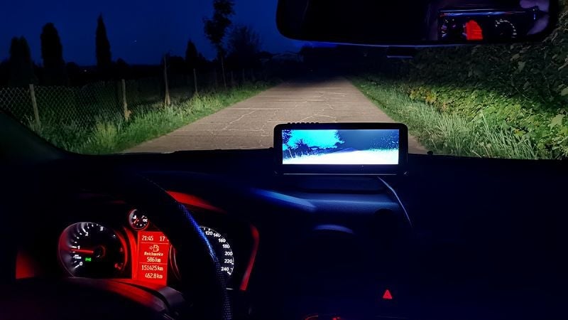 The only problem the system had when I used it at night was that the lights from the other cars are even more blinding on the screen, but you can greatly improve the situation by reducing the brightness.
