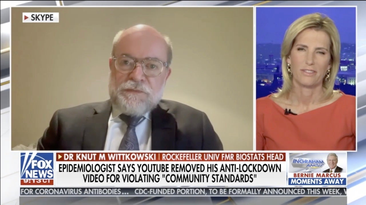 Wittkowski also told Ingraham about how YouTube had taken down one of his videos for being filled with misinformation, a claim he rejects, of course. The doctor also said that “there’s no evidence the shutdown had any affect” and insisted that U.S. schools should be wide open, failing to mention that kids are starting to present with nasty inflammatory symptoms after getting covid-19.