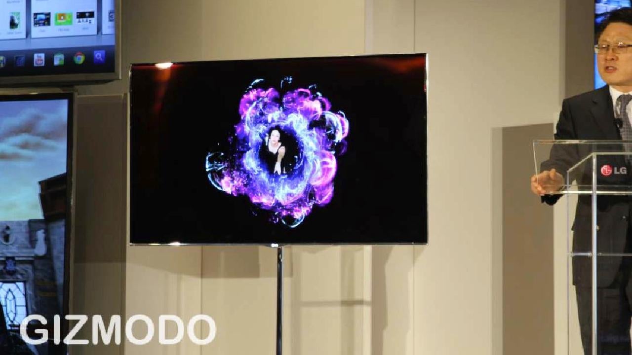 We know that LG’s previous claim of “world’s largest” won’t hold up anymore—Samsung’s also kicking out a 55-inch OLED amazon—but LG has Sammy beat on dimensions. If svelteness is a virtue to you, close your eyes and smile at the OLED’s 0.19 inch waist size (Samsung’s offering is 0.3 inches). Not a profound difference, but holy damn this thing will be crisp and beautiful, both in form and picture. We’ll let you know how it shines in person when we put our eyes on it—along with pricing and availability info. Expect the former to be quite steep.
