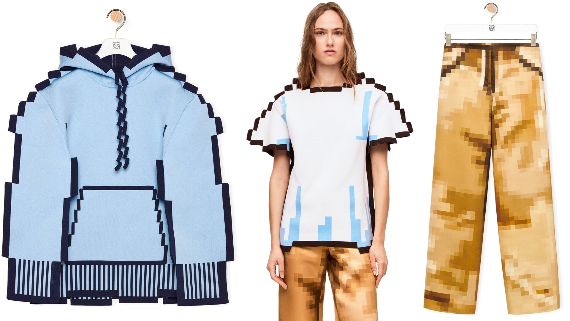 Your favorite retro games will never look as good as you remember unless you play them on an old tube TV whose analog technology helped to smooth out the pixelated graphics of the 8 and 16-bit gaming eras. Or, you can just embrace the pixelation, which is what fashion label Loewe has done with its new clothing line that’s finally available for purchase.