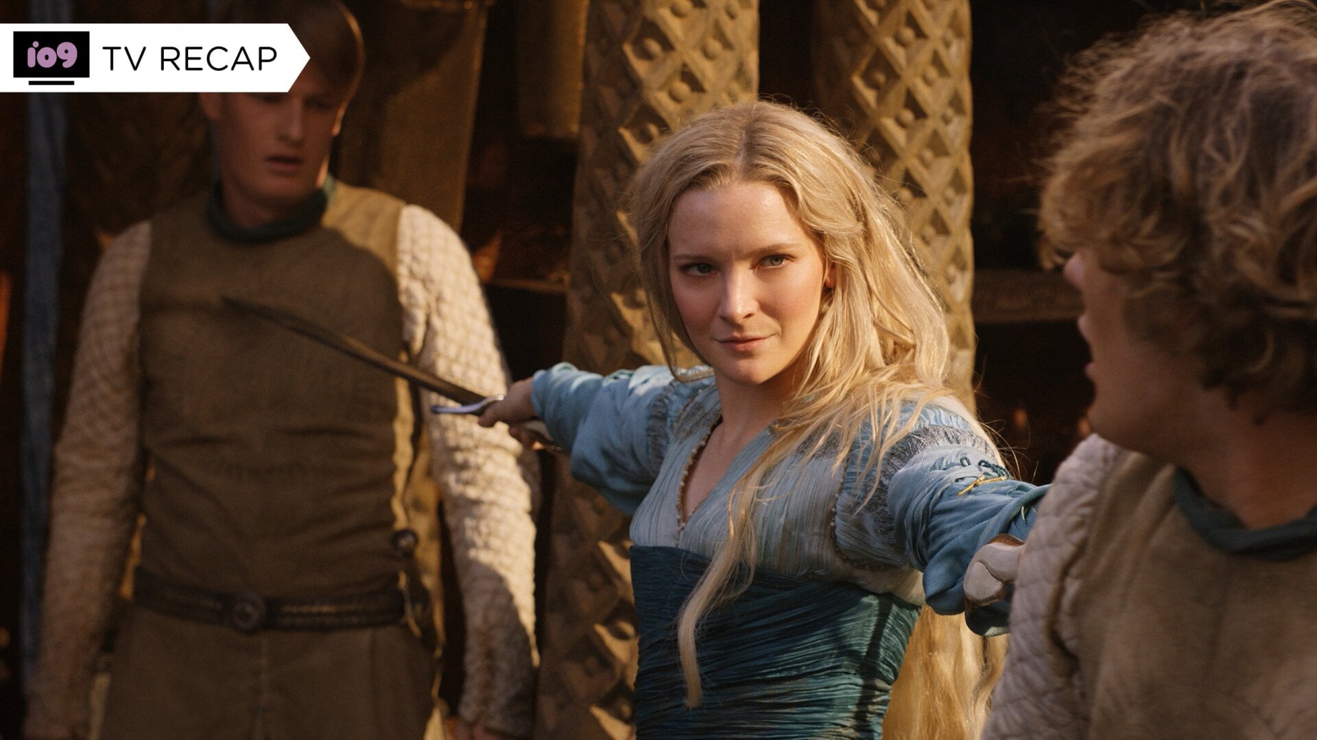 Over in the Southlands, everything is arguably going the worst. As Bronwyn and Arondir attempt to rally the refugees to fight against the arrival of Adar and his orcs, the Sauron-worshipping oldie who tried to get Theo to side with him last week manages to get half of them to go with him and pledge fealty—almost utterly breaking Bronwyn’s resolve, and bringing the secrets behind the blade Theo found to light. And then there’s Lindon, where Gil-Galad’s hosting of Durin reveals the lingering divides between Elf and Dwarf—and Elrond discovers that the plight of the Eldar might be much, much more dire than he could ever have known.