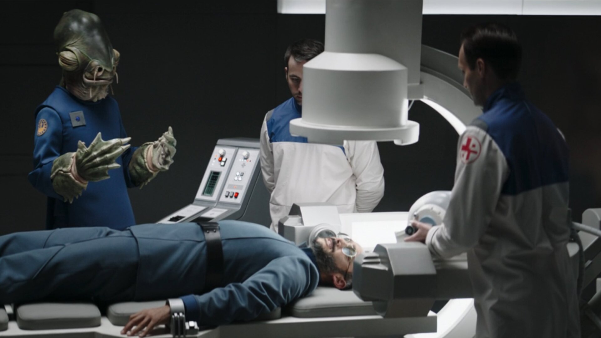 That should be a happy ending for Dr. Pershing, but it’s not, and not least because former Imperial officer Elia Kane (Katy O’Brien), who also received amnesty but does not appear to have switched sides, tricks the scientist into illegally trying to take research equipment from a decommissioned Star Destroyer, getting caught, and having his mind wiped by a “602 Mitigator” to get rid of what Republic monitors assume are lingering, evil, Imperial sentiments. Unfortunately for Pershing, Kane secretly turns up what the Empire used to call a “mind-flayer” up to 11, presumably to destroy whatever knowledge Pershing had of Moff Gideon’s cloning program.