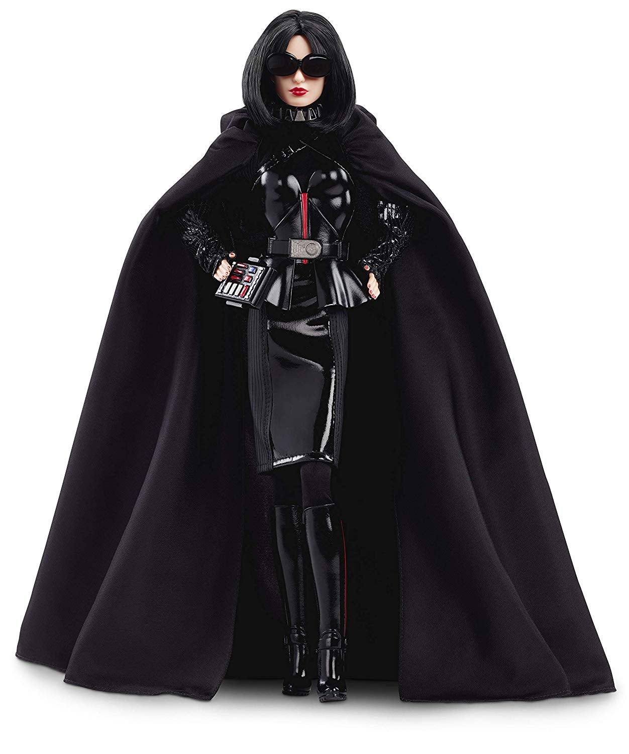 They are, frankly, incredible. As much as I would’ve loved to have seen a Darth Vader body with Barbie’s head on it instead of the helmet, or Barbie essentially wearing R2-D2 as an incredibly unwieldly, boxy halter dress, these looks instead go full on weird and wild. Vader Barbie looks like a cross between Edna Mode from The Incredibles—if Edna deigned to wear capes, that is—and fashion designer Anna Wintour, clad in leather number that wouldn’t look out of place in Star Wars burlesque.