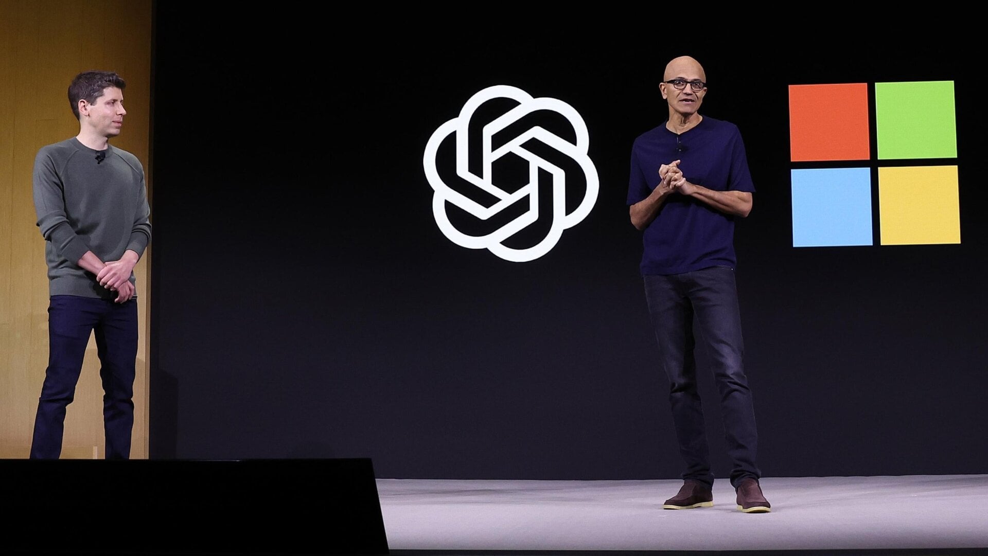 Microsoft CEO Satya Nadella joined OpenAI’s Sam Altman on stage during DevDay, a successful event that may have been tarnished by a week of hacks, outages, and restrictions from its largest investor.