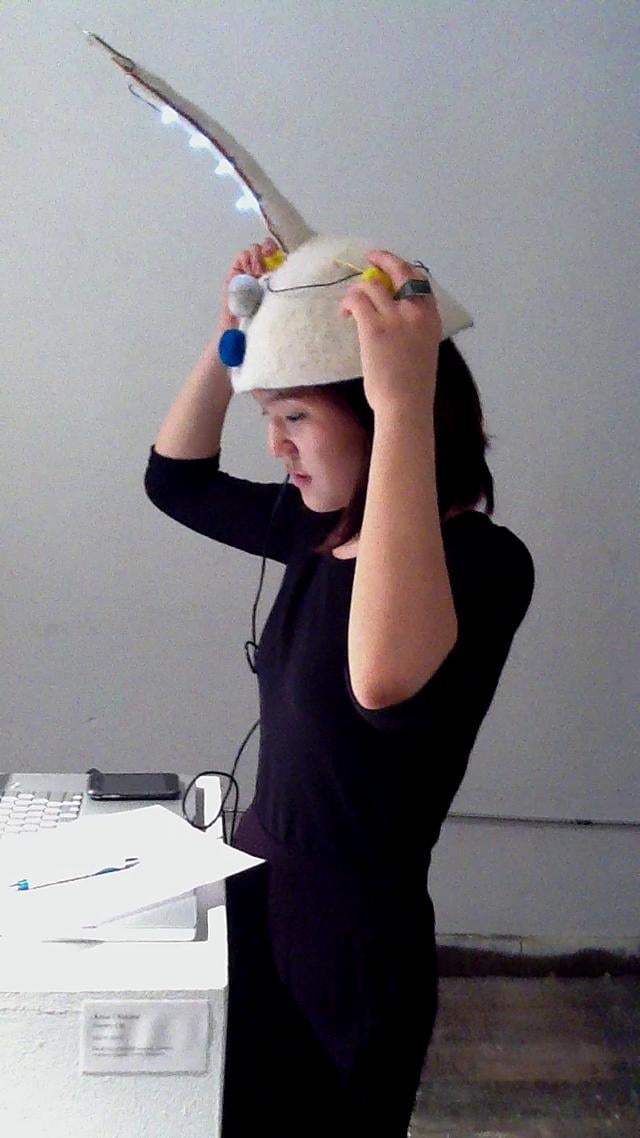 Worn on the head, as hats are wont to be, they include a variety of soft balls, lights and sensors that play musical tones when manipulated by the wearer or a willing partner.