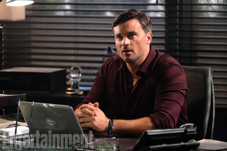 Finally, here’s a picture from Entertainment Weekly of Tom Welling’s debut—and, technically, return to the world of DC comics TV—as Marcus Pierce, a do-gooder nuisance for the devil himself.